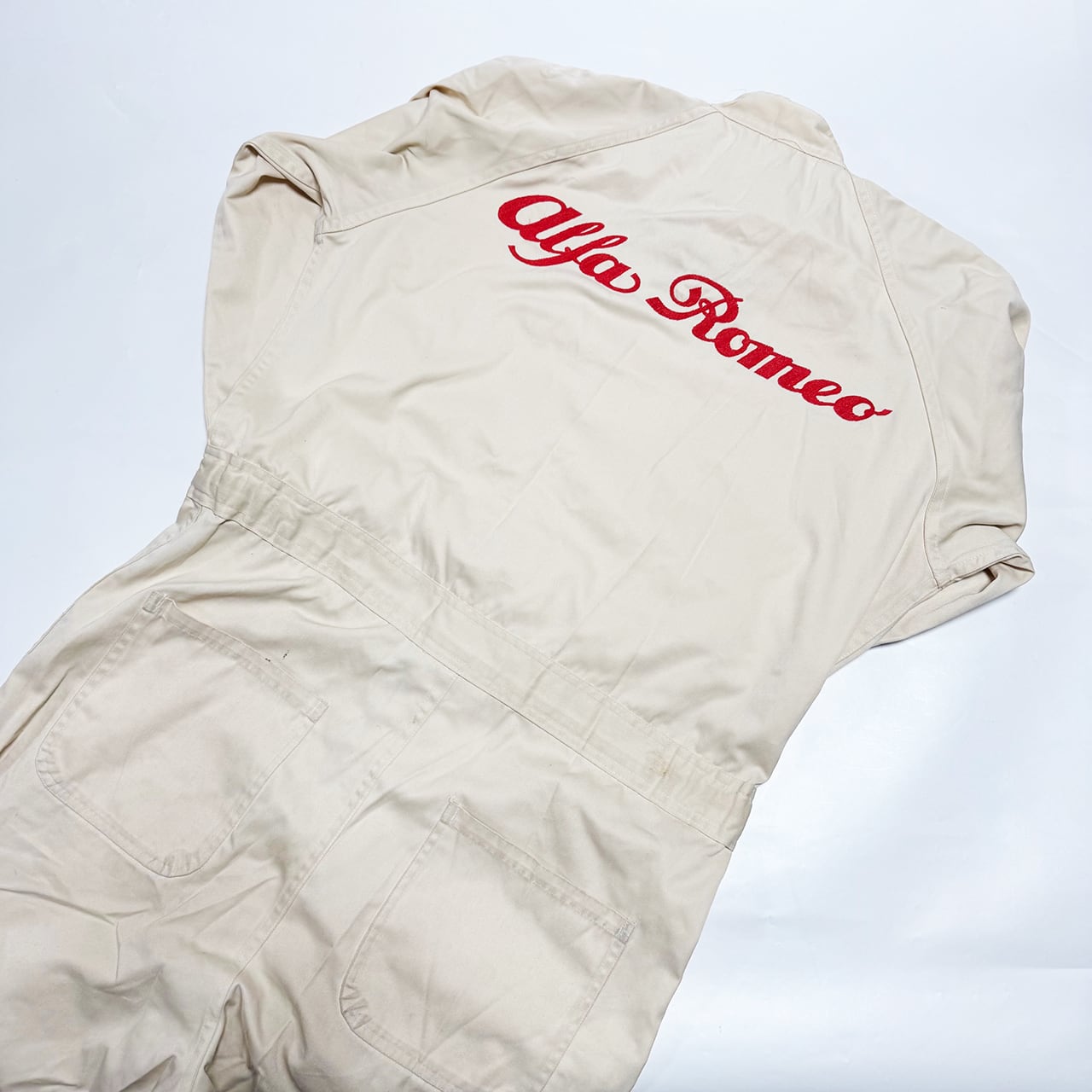 大人気メーカーさんのスタッフつなぎ。通常は赤色が多く出回っていますが、白、クリーム系は珍しく、これまた貴重な素材です。