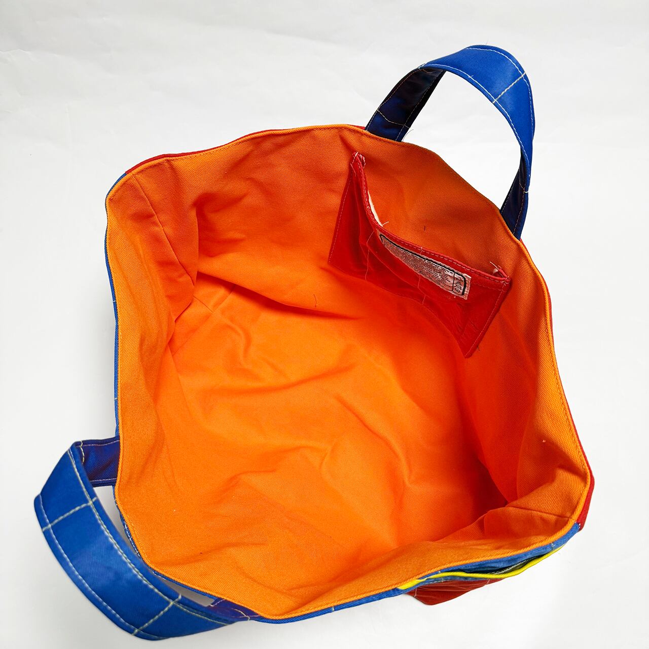 「もったいない」「再利用」「ひとつ使いましょう」「SDGs」などをコンセプトに。廃棄、不要になったツナギ、作業着、作業ズボン、古着屋さんに眠る衣服、その他生地類を丁寧に分解し、縫製の職人さんとクリエーターが再デザイン、大型のオリジナルトートバッグを完成させました。