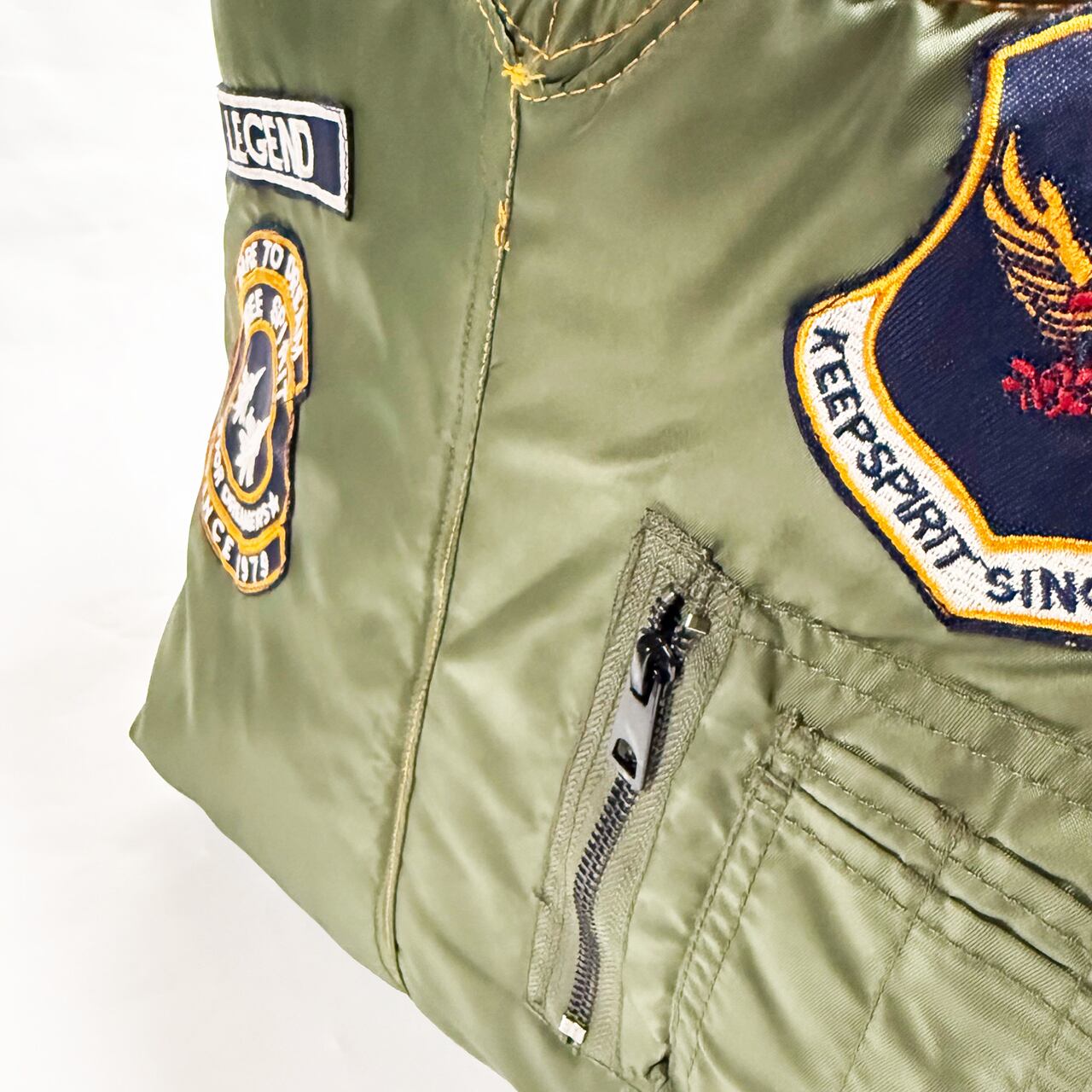 新品MA-1ジャケットを分解しちゃいました。これもかなりのボリュームです、ツルツルの質感も触り心地満点です。
