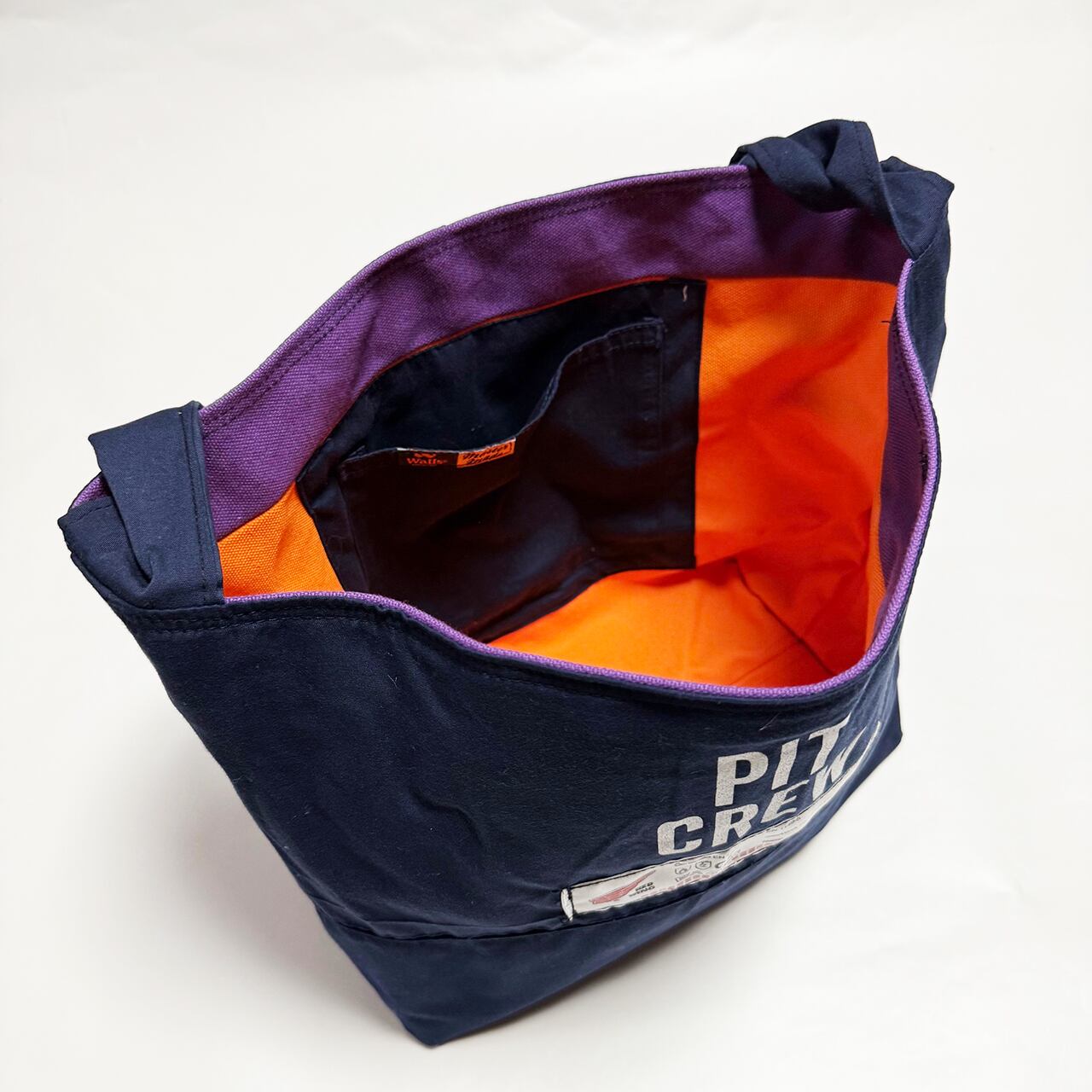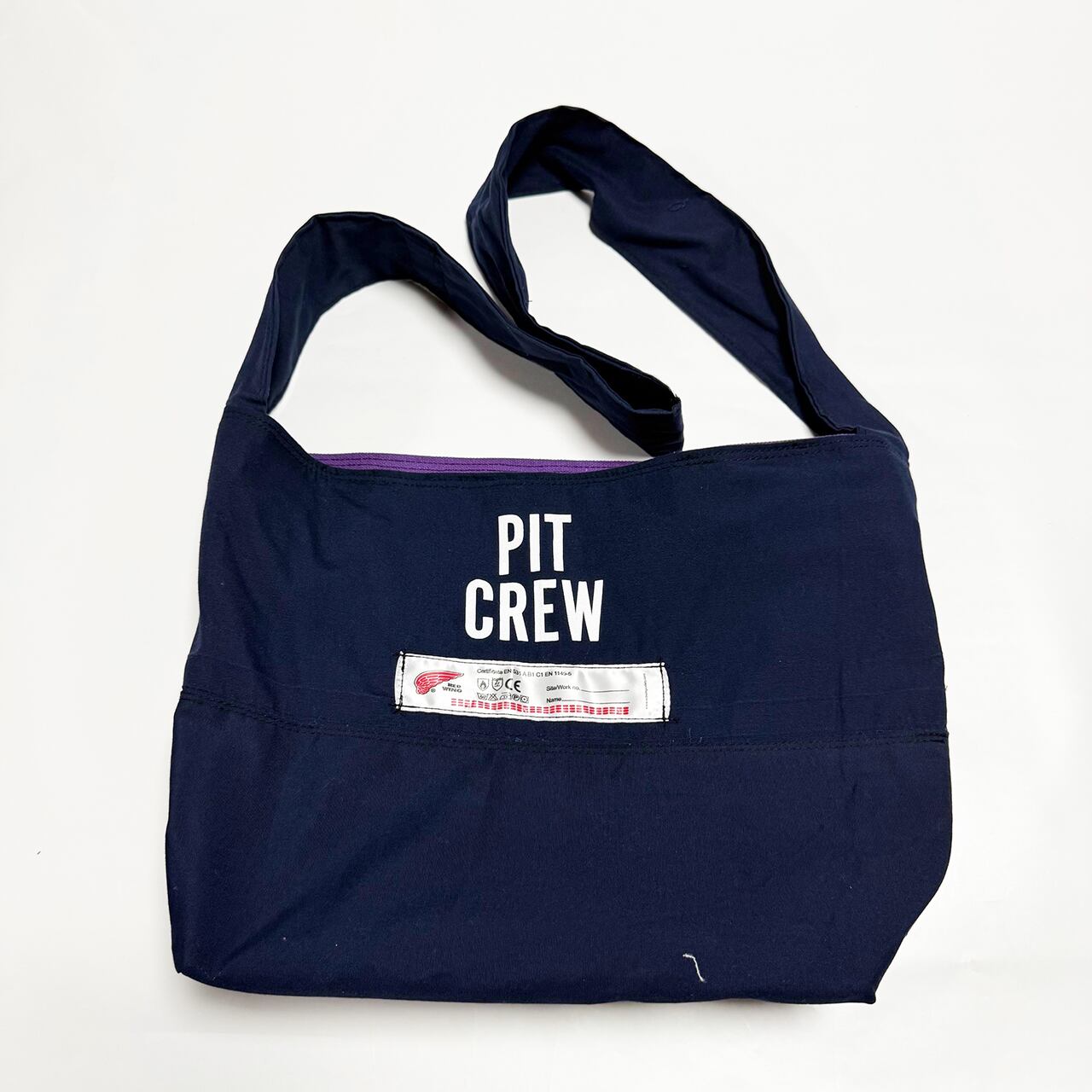 ・大型トートバッグ同様に、つなぎや作業着、レーシングスーツなどからリメイクしてています、もちろん裏地は厚手の頒布を使用しています、自立するトートバッグです。