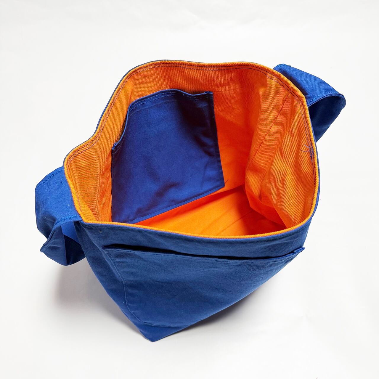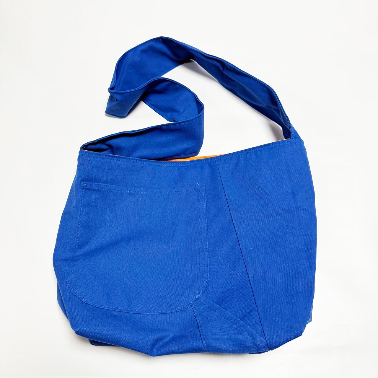 「もったいない」「再利用」「ひとつ使いましょう」「SDGs」などをコンセプトに。廃棄、不要になったツナギ、作業着、作業ズボン、古着屋さんに眠る衣服、その他生地類を丁寧に分解し、縫製の職人さんとクリエーターが再デザイン、大型のオリジナルトートバッグを完成させました。