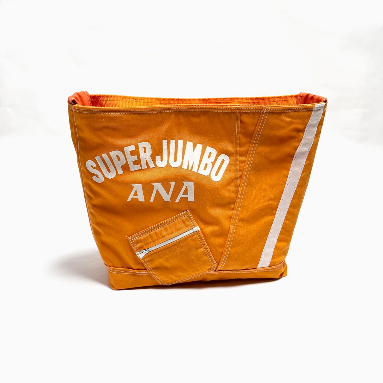 「もったいない」「再利用」「ひとつ使いましょう」「SDGs」などをコンセプトに。廃棄、不要になったツナギ、作業着、作業ズボン、古着屋さんに眠る衣服、その他生地類を丁寧に分解し、縫製の職人さんとクリエーターが再デザイン、大型のオリジナルトートバッグを完成させました。