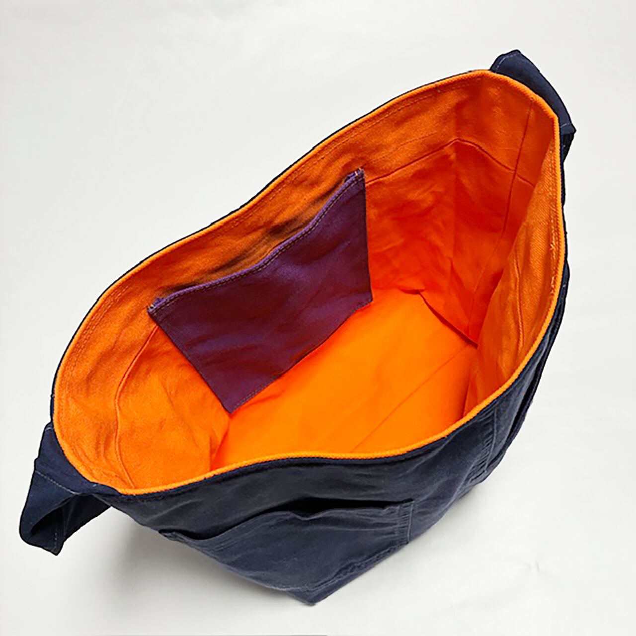 ・大型トートバッグ同様に、つなぎや作業着、レーシングスーツなどからリメイクしてています、もちろん裏地は厚手の頒布を使用しています、自立するトートバッグです。