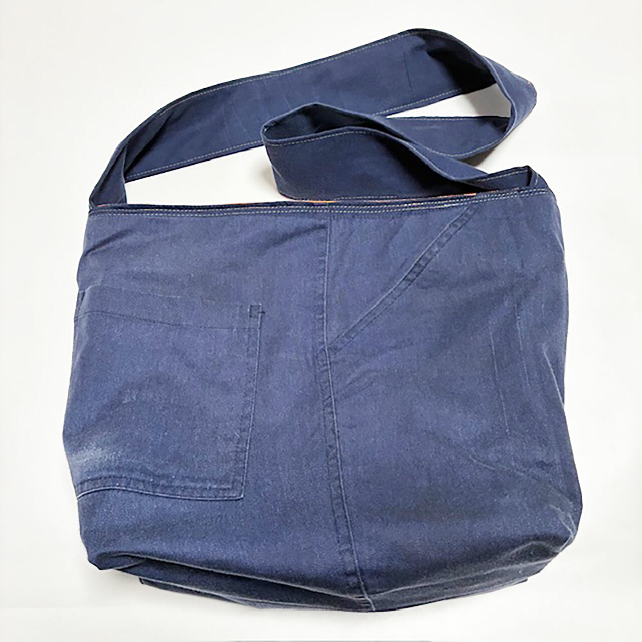 「もったいない」「再利用」「ひとつ使いましょう」「SDGs」などをコンセプトに。廃棄、不要になったツナギ、作業着、作業ズボン、古着屋さんに眠る衣服、その他生地類を丁寧に分解し、縫製の職人さんとクリエーターが再デザイン、大型のオリジナルトートバッグを完成させました。