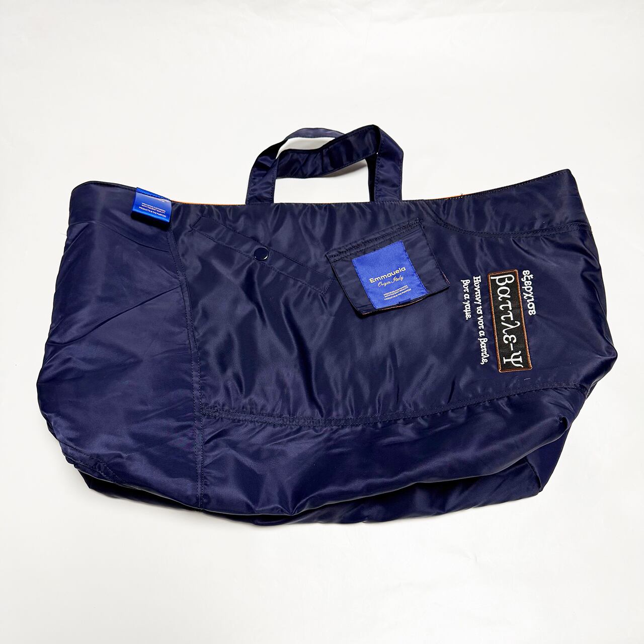 「もったいない」「再利用」「ひとつ使いましょう」「SDGs」などをコンセプトに。廃棄、不要になったツナギ、作業着、作業ズボン、古着屋さんに眠る衣服、その他生地類を丁寧に分解し、縫製の職人さんとクリエーターが再デザイン、大型のオリジナルトートバッグを完成させました。