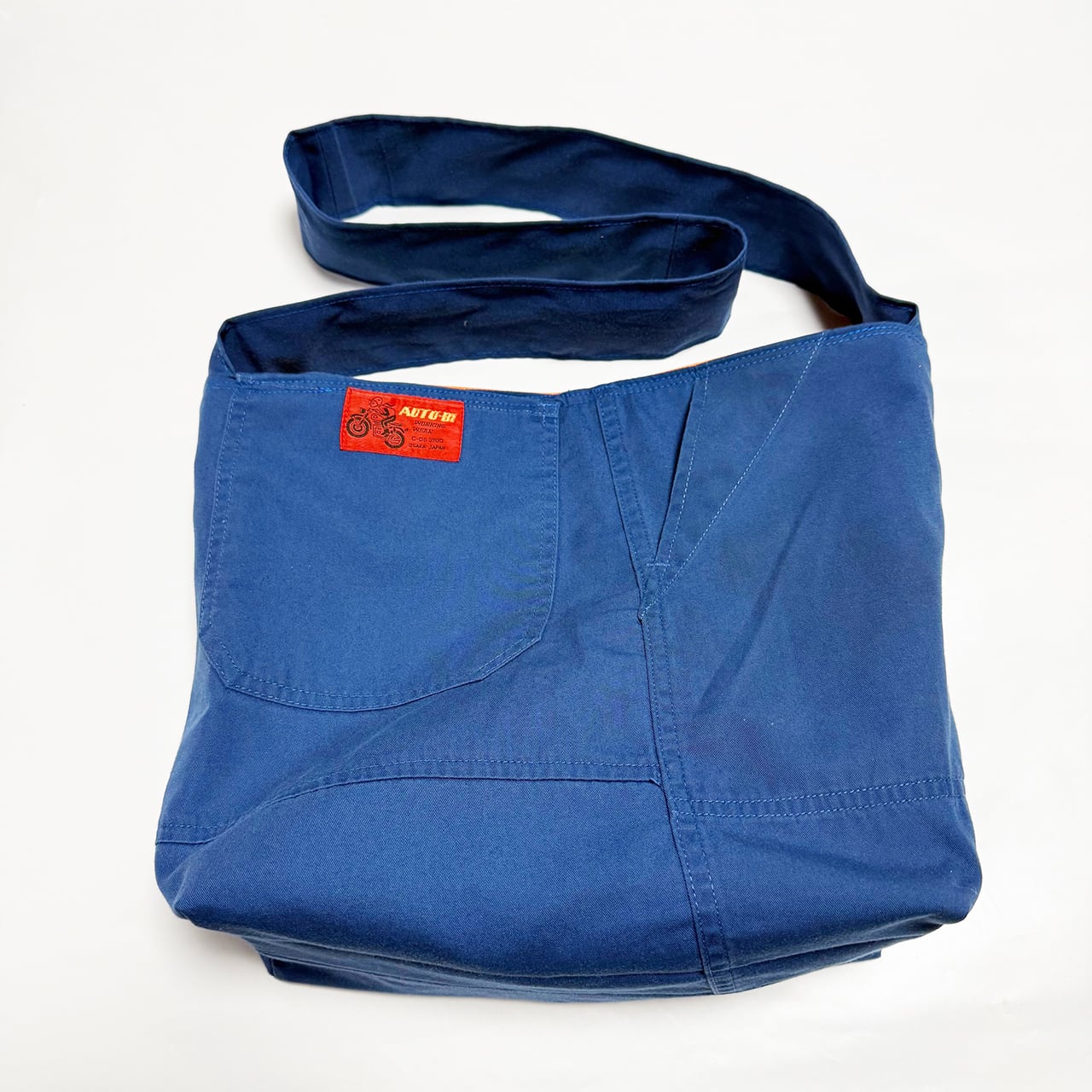 ・大型トートバッグ同様に、つなぎや作業着、レーシングスーツなどからリメイクしてています、もちろん裏地は厚手の頒布を使用しています、自立するトートバッグです。