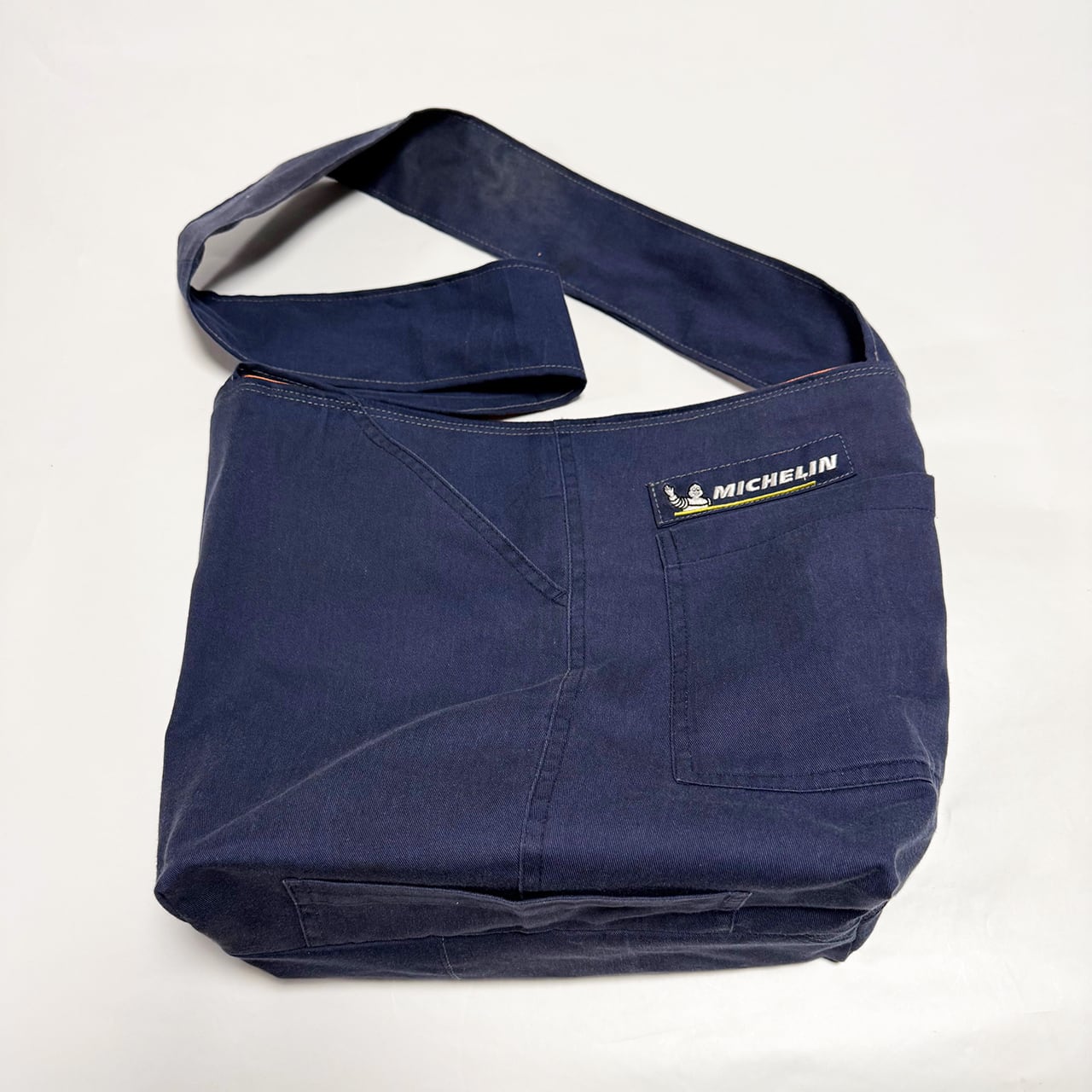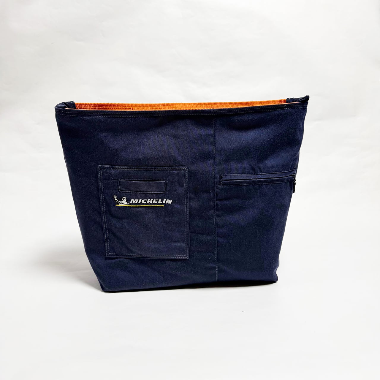 ・大型トートバッグ同様に、つなぎや作業着、レーシングスーツなどからリメイクしてています、もちろん裏地は厚手の頒布を使用しています、自立するトートバッグです。