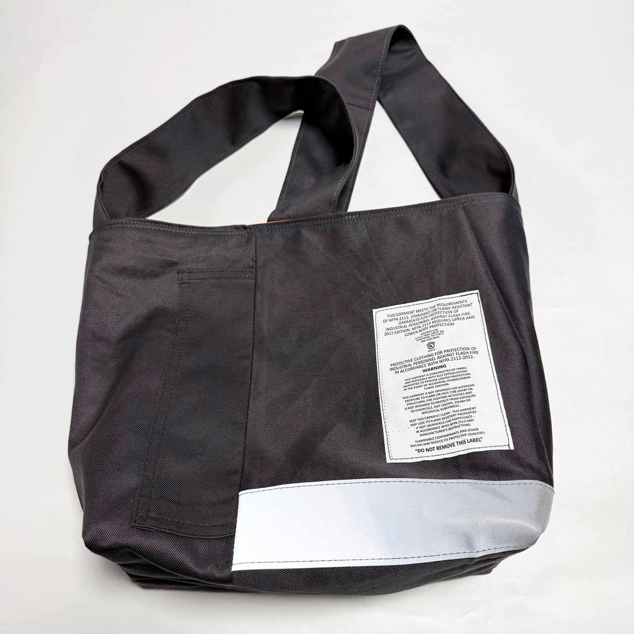 ・大型トートバッグ同様に、つなぎや作業着、レーシングスーツなどからリメイクしてています、もちろん裏地は厚手の頒布を使用しています、自立するトートバッグです。