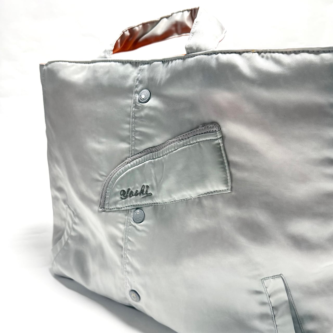 「もったいない」「再利用」「ひとつ使いましょう」「SDGs」などをコンセプトに。廃棄、不要になったツナギ、作業着、作業ズボン、古着屋さんに眠る衣服、その他生地類を丁寧に分解し、縫製の職人さんとクリエーターが再デザイン、大型のオリジナルトートバッグを完成させました。