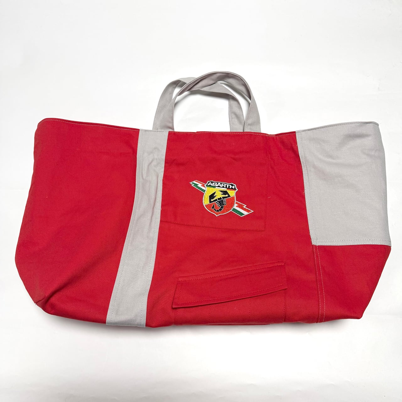 「もったいない」「再利用」「ひとつ使いましょう」「SDGs」などをコンセプトに。廃棄、不要になったツナギ、作業着、作業ズボン、古着屋さんに眠る衣服、その他生地類を丁寧に分解し、縫製の職人さんとクリエーターが再デザイン、大型のオリジナルトートバッグを完成させました。
