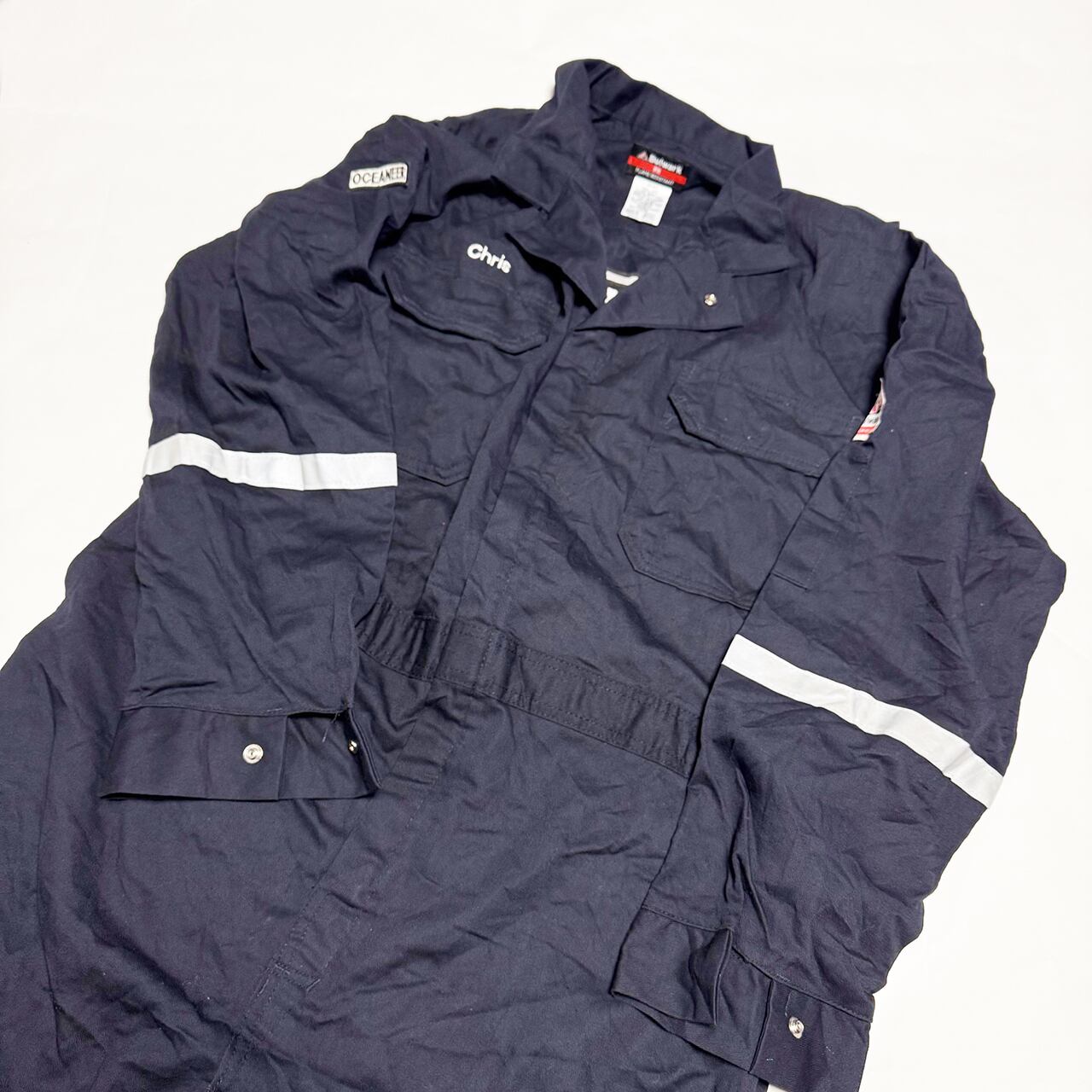 ・大型トートバッグ同様に、つなぎや作業着、レーシングスーツなどからリメイクしてています、もちろん裏地は厚手の頒布を使用しています、自立するトートバッグです。