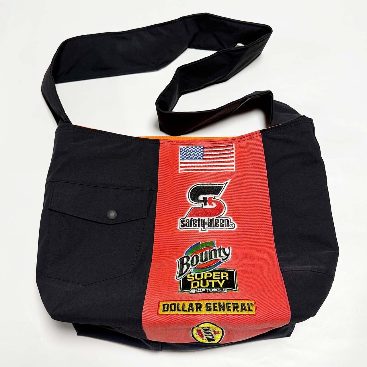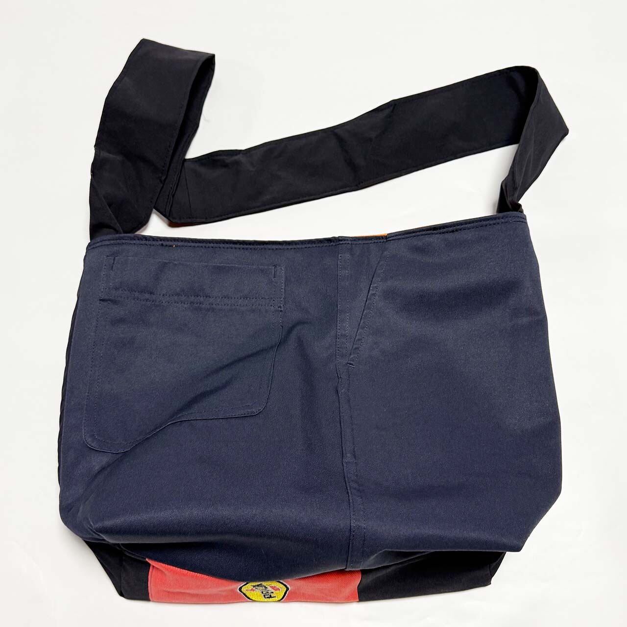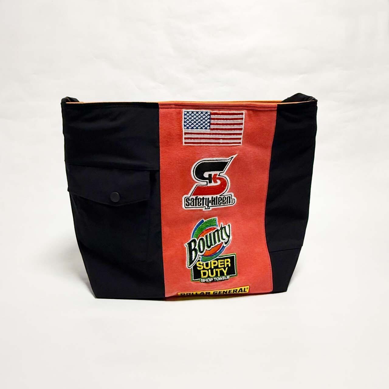 ・大型トートバッグ同様に、つなぎや作業着、レーシングスーツなどからリメイクしてています、もちろん裏地は厚手の頒布を使用しています、自立するトートバッグです。