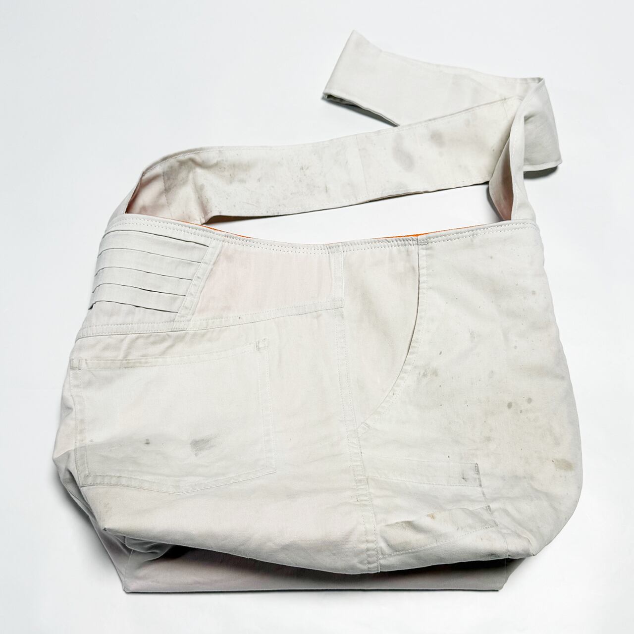 「もったいない」「再利用」「ひとつ使いましょう」「SDGs」などをコンセプトに。廃棄、不要になったツナギ、作業着、作業ズボン、古着屋さんに眠る衣服、その他生地類を丁寧に分解し、縫製の職人さんとクリエーターが再デザイン、大型のオリジナルトートバッグを完成させました。