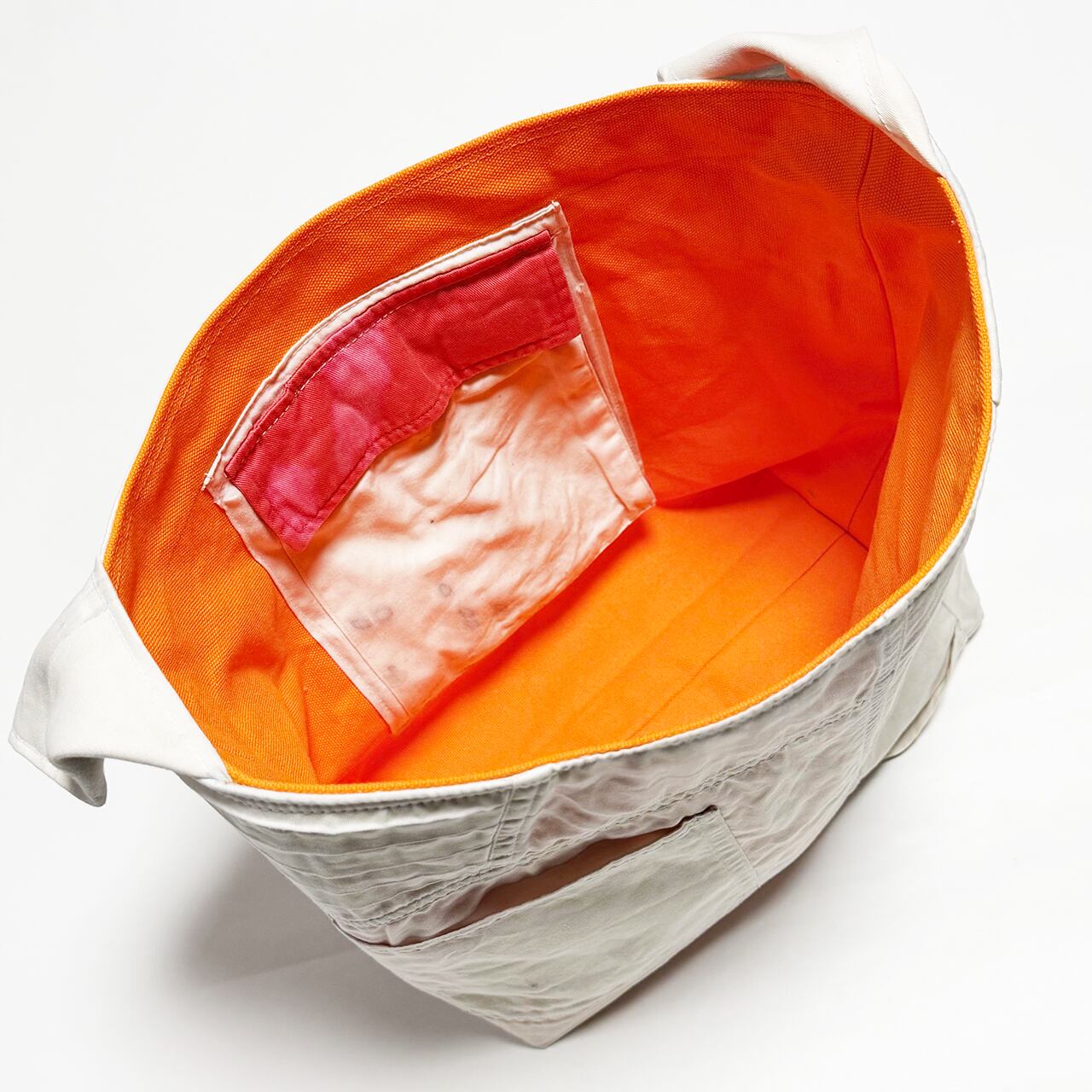 ・大型トートバッグ同様に、つなぎや作業着、レーシングスーツなどからリメイクしてています、もちろん裏地は厚手の頒布を使用しています、自立するトートバッグです。
