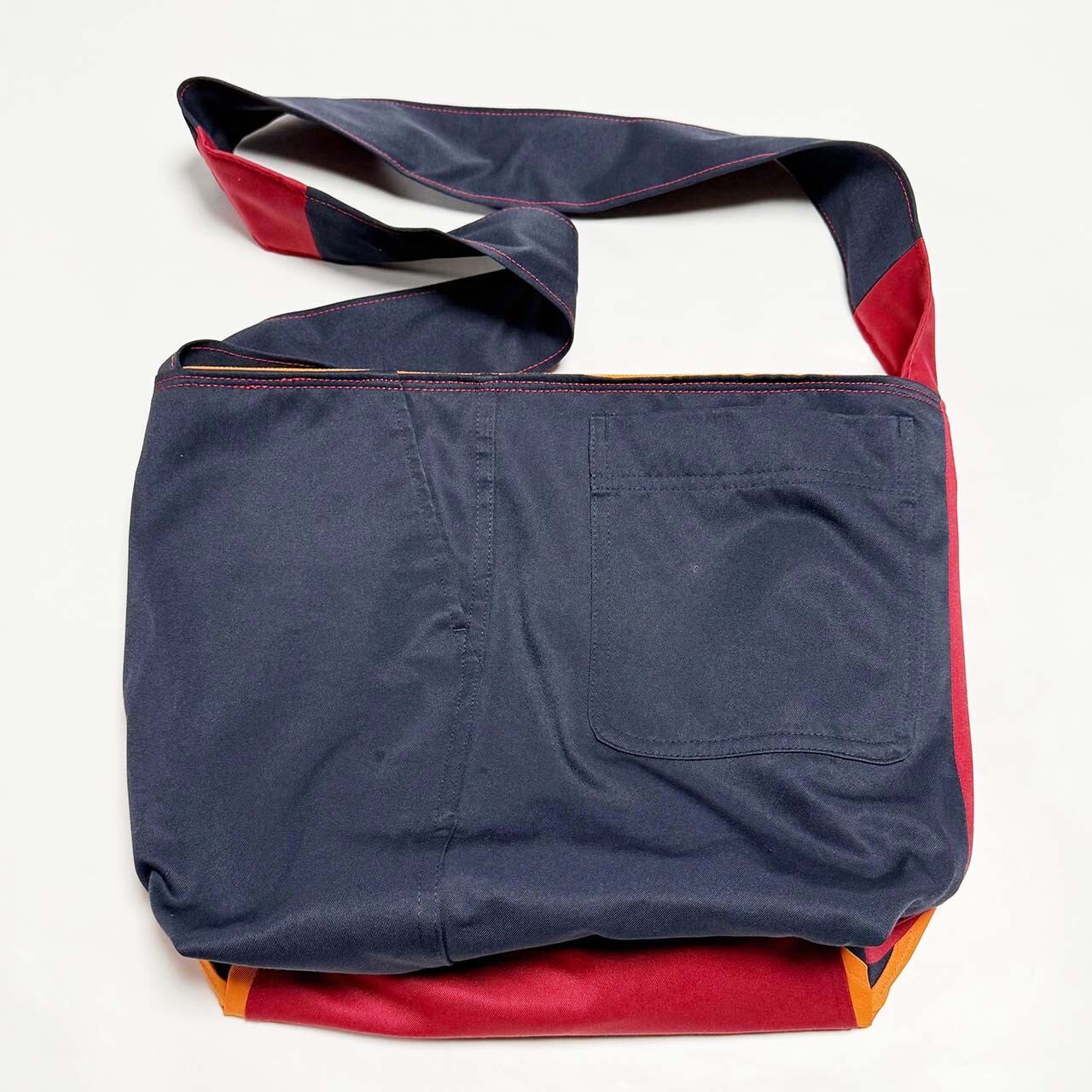 ・大型トートバッグ同様に、つなぎや作業着、レーシングスーツなどからリメイクしてています、もちろん裏地は厚手の頒布を使用しています、自立するトートバッグです。