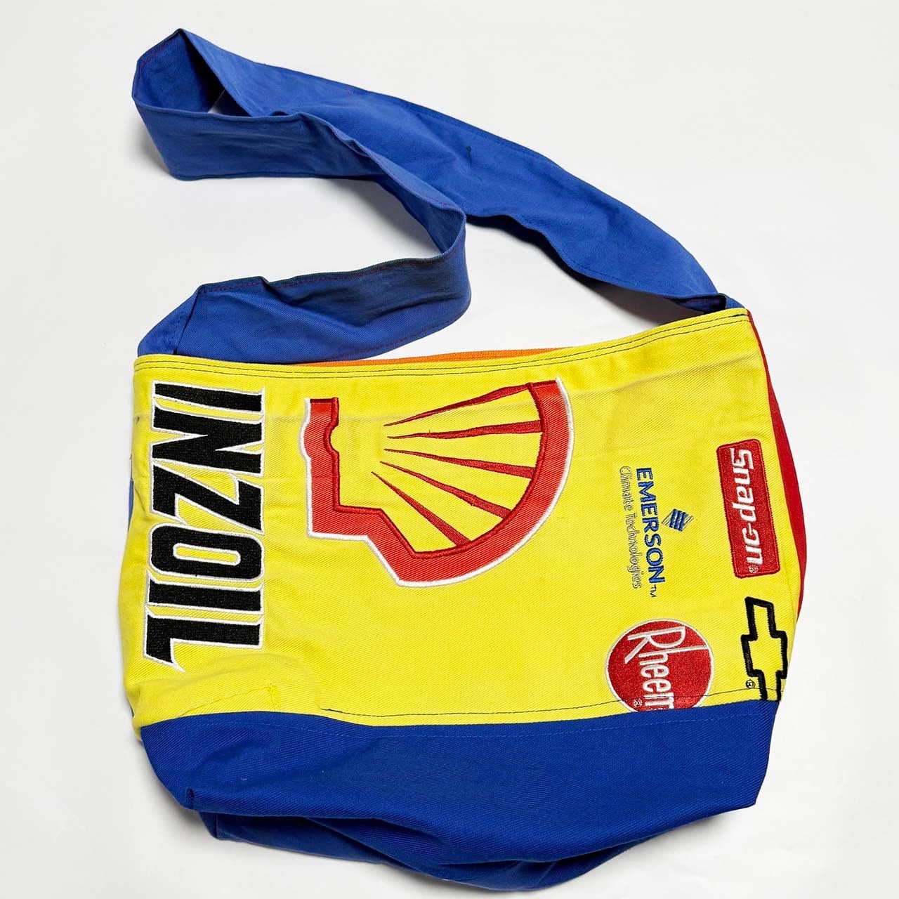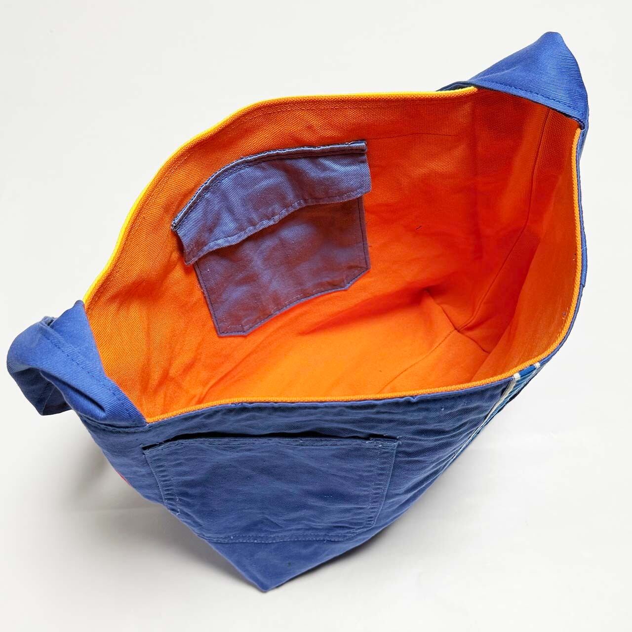 ・大型トートバッグ同様に、つなぎや作業着、レーシングスーツなどからリメイクしてています、もちろん裏地は厚手の頒布を使用しています、自立するトートバッグです。