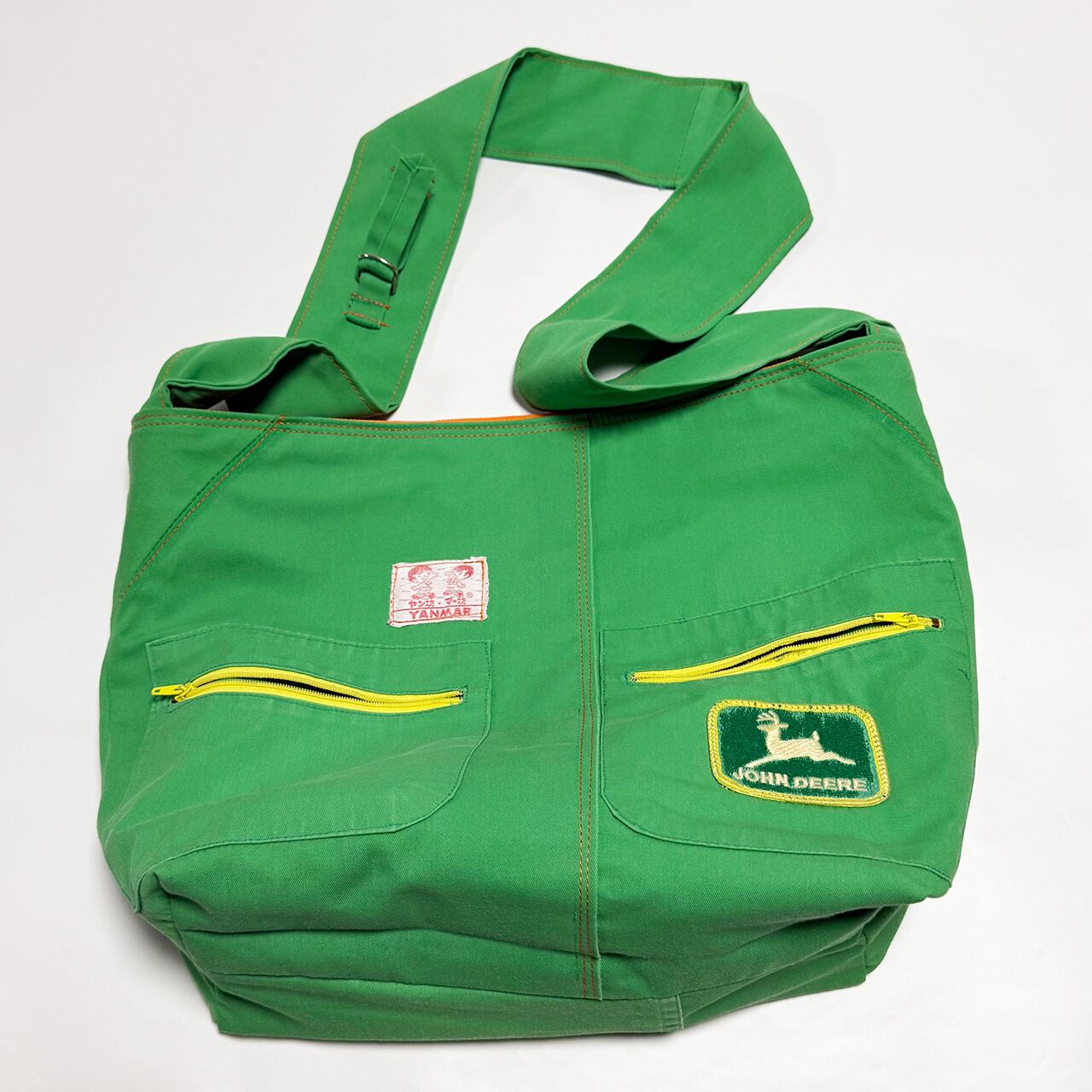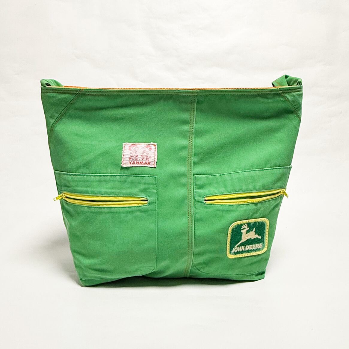 ・大型トートバッグ同様に、つなぎや作業着、レーシングスーツなどからリメイクしてています、もちろん裏地は厚手の頒布を使用しています、自立するトートバッグです。