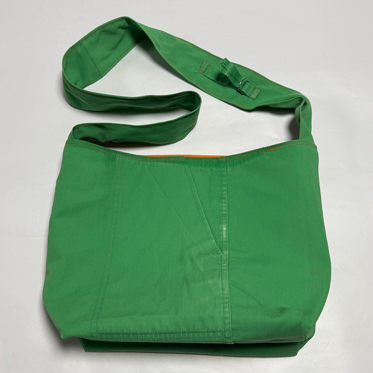 ・大型トートバッグ同様に、つなぎや作業着、レーシングスーツなどからリメイクしてています、もちろん裏地は厚手の頒布を使用しています、自立するトートバッグです。