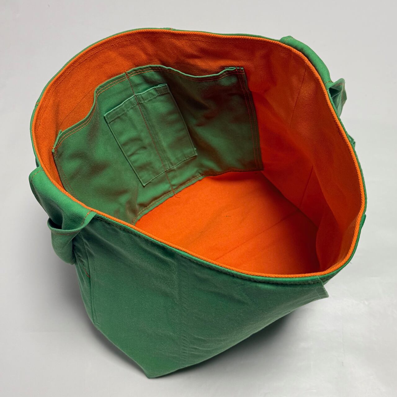 「もったいない」「再利用」「ひとつ使いましょう」「SDGs」などをコンセプトに。廃棄、不要になったツナギ、作業着、作業ズボン、古着屋さんに眠る衣服、その他生地類を丁寧に分解し、縫製の職人さんとクリエーターが再デザイン、大型のオリジナルトートバッグを完成させました。
