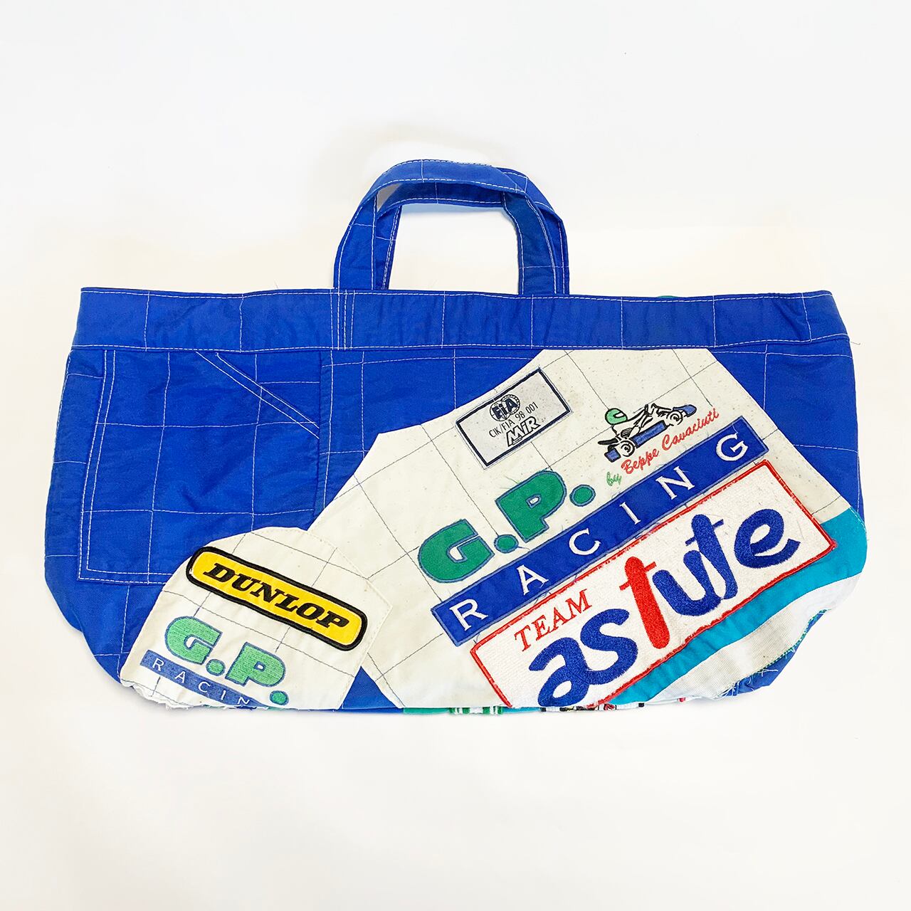 「もったいない」「再利用」「ひとつ使いましょう」「SDGs」などをコンセプトに。廃棄、不要になったツナギ、作業着、作業ズボン、古着屋さんに眠る衣服、その他生地類を丁寧に分解し、縫製の職人さんとクリエーターが再デザイン、大型のオリジナルトートバッグを完成させました。