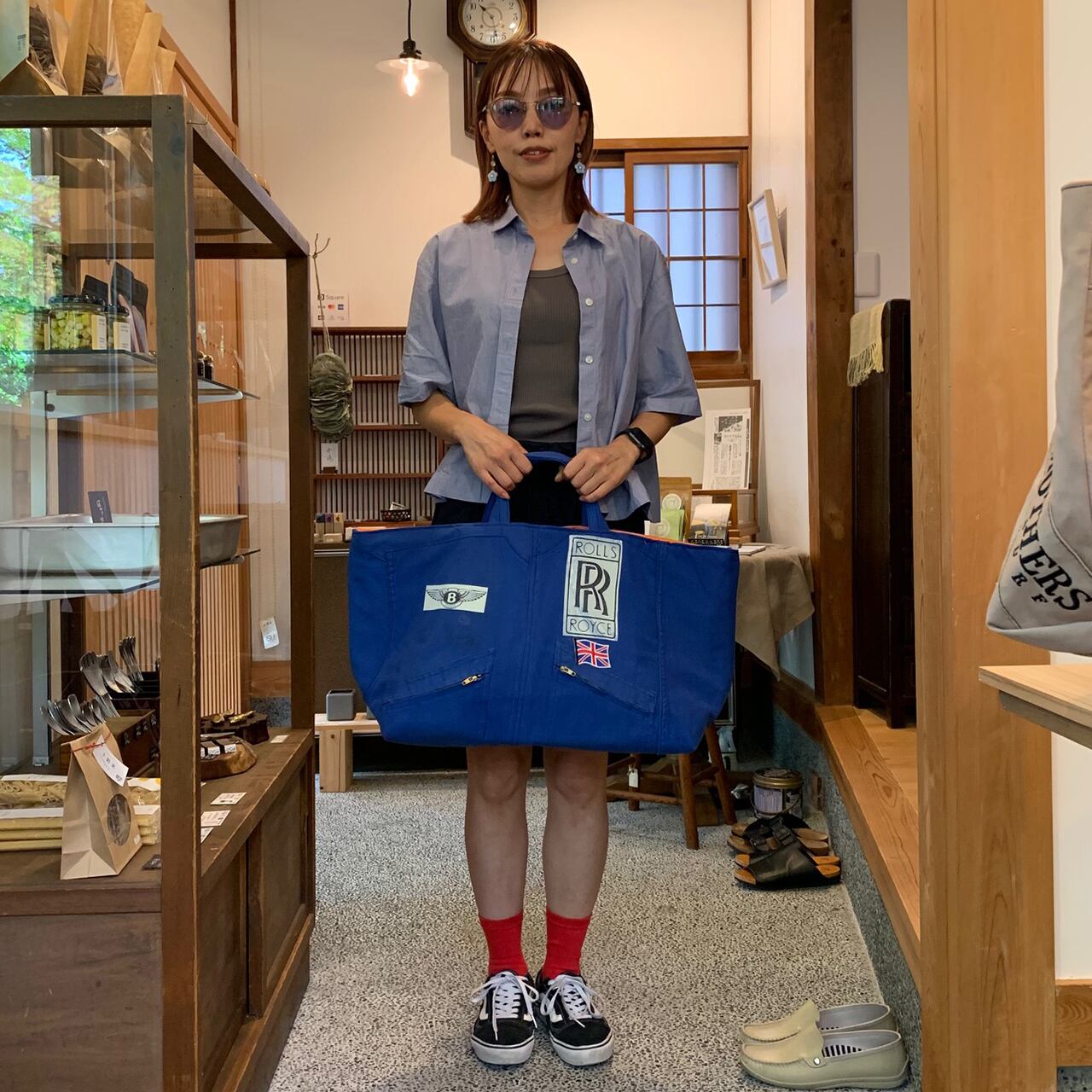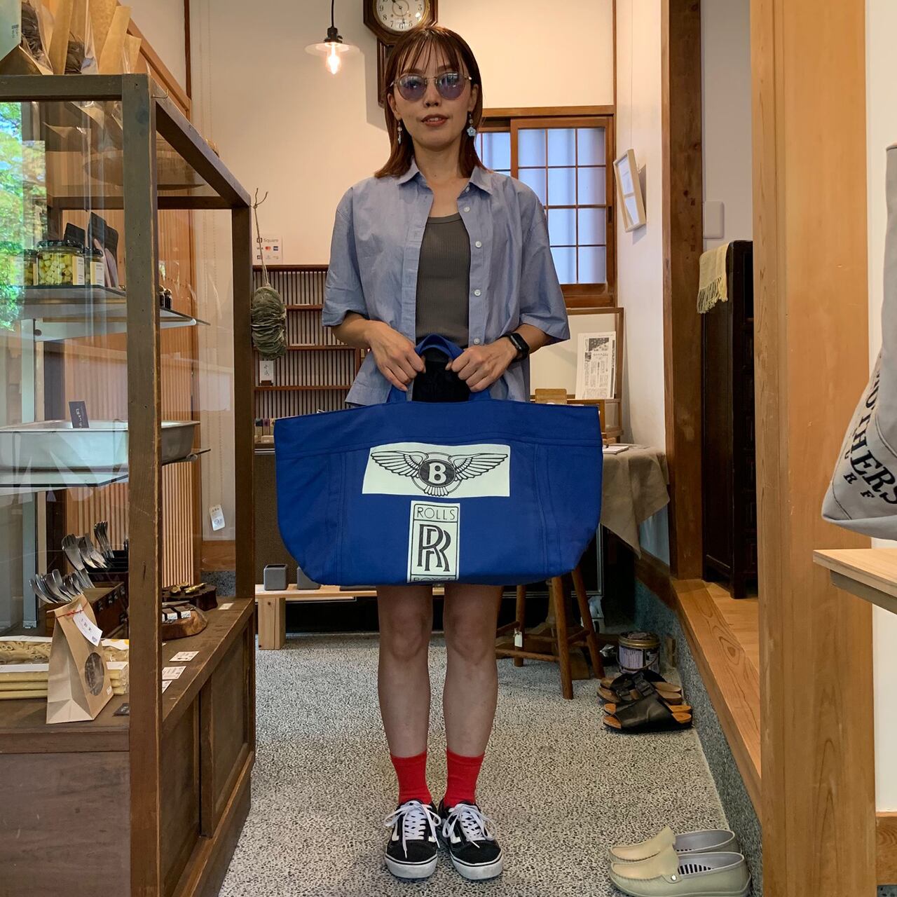 「もったいない」「再利用」「ひとつ使いましょう」「SDGs」などをコンセプトに。廃棄、不要になったツナギ、作業着、作業ズボン、古着屋さんに眠る衣服、その他生地類を丁寧に分解し、縫製の職人さんとクリエーターが再デザイン、大型のオリジナルトートバッグを完成させました。