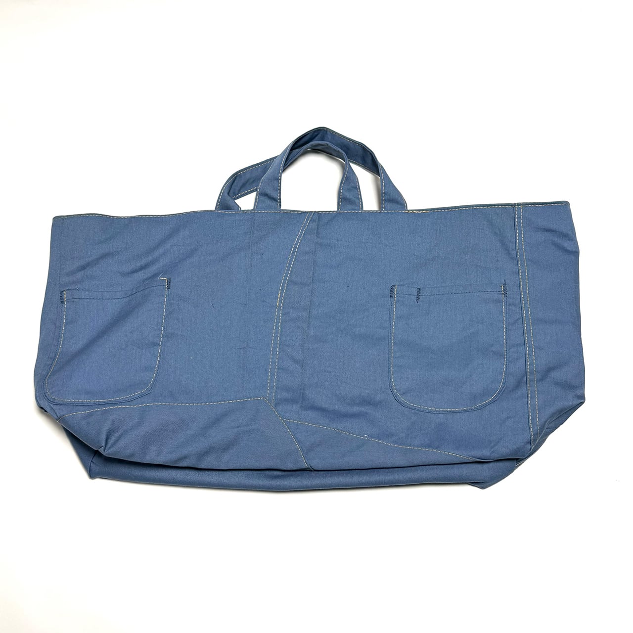 「もったいない」「再利用」「ひとつ使いましょう」「SDGs」などをコンセプトに。廃棄、不要になったツナギ、作業着、作業ズボン、古着屋さんに眠る衣服、その他生地類を丁寧に分解し、縫製の職人さんとクリエーターが再デザイン、大型のオリジナルトートバッグを完成させました。