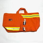 「もったいない」「再利用」「ひとつ使いましょう」「SDGs」などをコンセプトに。廃棄、不要になったツナギ、作業着、作業ズボン、古着屋さんに眠る衣服、その他生地類を丁寧に分解し、縫製の職人さんとクリエーターが再デザイン、大型のオリジナルトートバッグを完成させました。