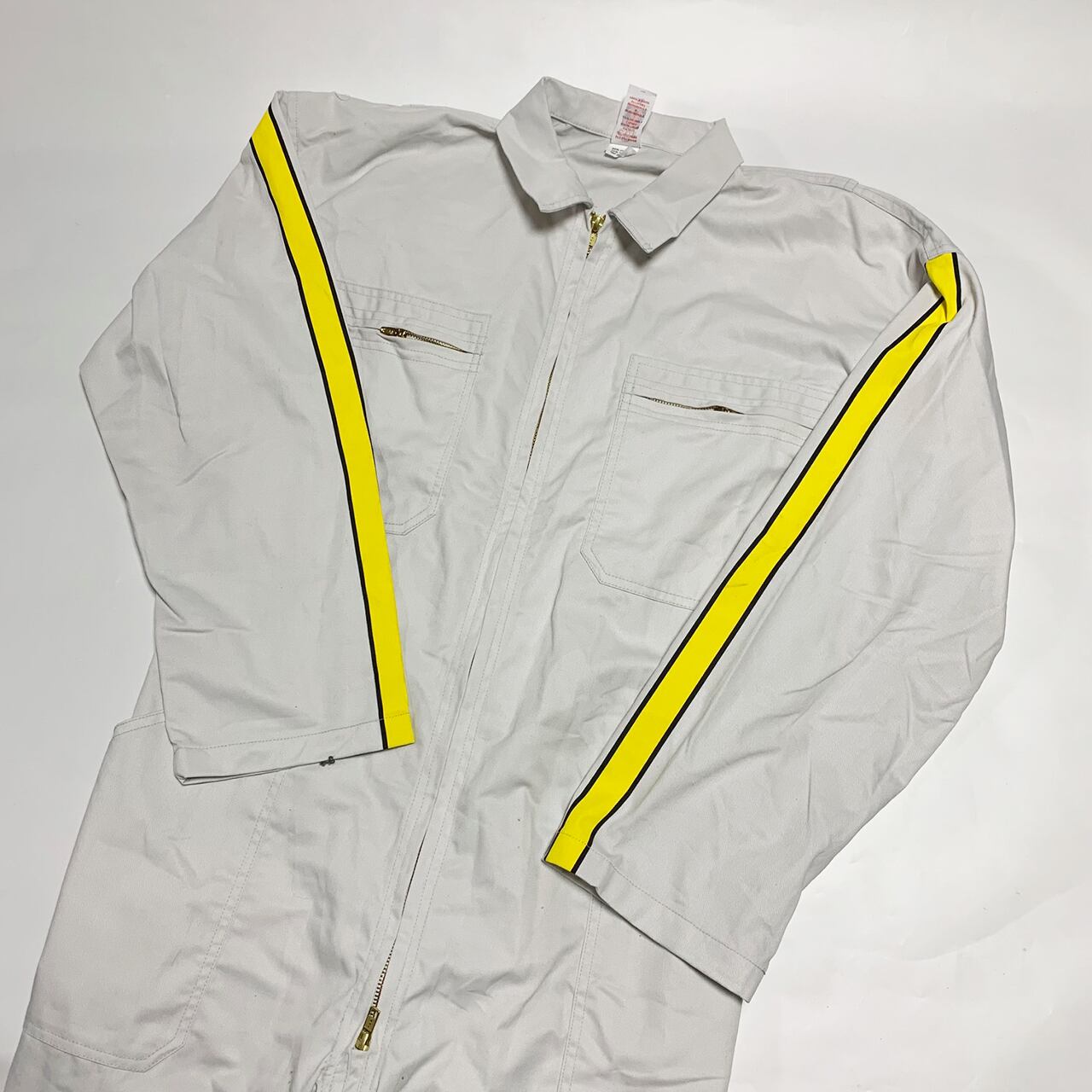 THE 作業着!意外に目にしないこの色目、地味と思いきやイエローラインがきっちりとしたアクセントに。