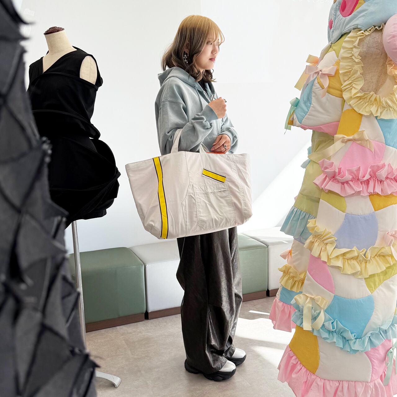 「もったいない」「再利用」「ひとつ使いましょう」「SDGs」などをコンセプトに。廃棄、不要になったツナギ、作業着、作業ズボン、古着屋さんに眠る衣服、その他生地類を丁寧に分解し、縫製の職人さんとクリエーターが再デザイン、大型のオリジナルトートバッグを完成させました。