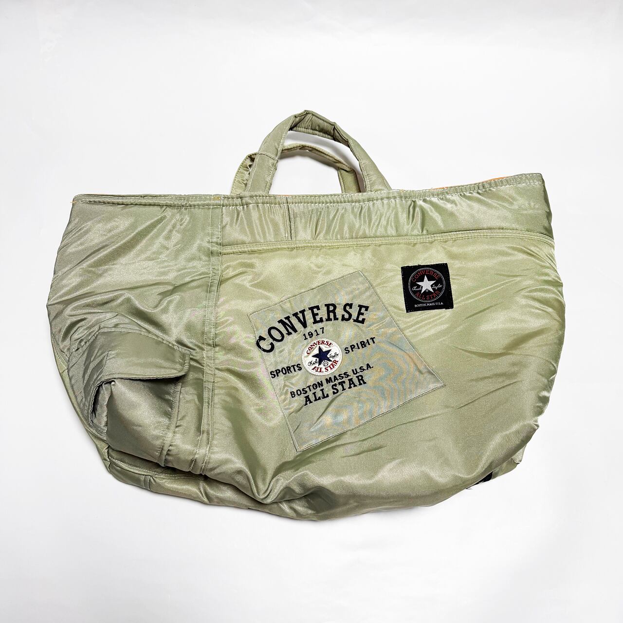 「もったいない」「再利用」「ひとつ使いましょう」「SDGs」などをコンセプトに。廃棄、不要になったツナギ、作業着、作業ズボン、古着屋さんに眠る衣服、その他生地類を丁寧に分解し、縫製の職人さんとクリエーターが再デザイン、大型のオリジナルトートバッグを完成させました。